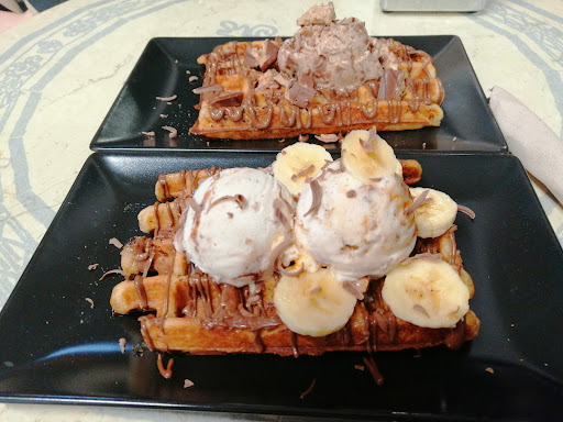 Te lo comes con los ojos, elige bien y evitarás sorpresas 👉👉🍨 Mucha variedad de helados, crepés y gofres hechos al momento, copas, batidos de fruta (😢con frutas congeladas, el que lleva fresas no sabe a fruta fresca 🍓⚠️), cafés, bebidas y latte con sabores... ☕🍵😋 🌳💺Sillas cómodas, terraza en un paseo agradable y tan cerca de la playa y el torreón que vale la pena pedir para llevar y disfrutar las vistas.🏖️🌴🏯 ⏩ Gofres💛👀 La masa para ser casera no es tan espectacular, tiene bastante azúcar crujiente que se nota en los bocados, pero está tierna. No es muy gruesa. Ponen la Nutella en cantidad justa, para que no sea demasiado empalagoso.✔️👀 ‼️Ponerle helado encima a un gofre o crepe cuando hace calor no es la mejor decisión, se derrite enseguida.🍦 Calidad-precio más o menos igual que la competencia. La atención es muy agradable y cercana ✔️👏👏 Tardan un poquito en preparar Gofres y crepes ¡porque se hacen al instante y a tu gusto! Hay un aseo 🚾 ¡Hinca el diente a un montón de opciones dulces en una de las calles peatonales principales...