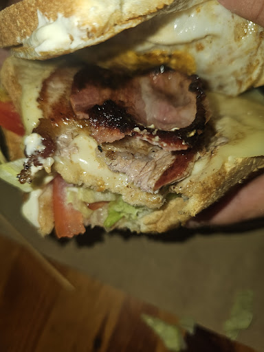 Sándwich especial: el lomo quemado, el huevo siendo a la plancha también pasado de cocción.