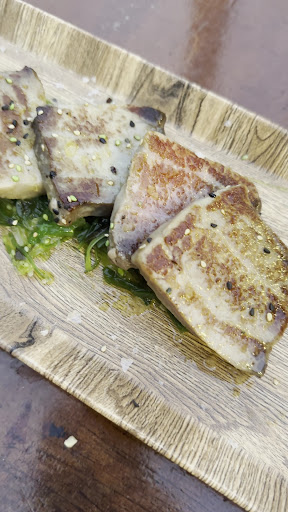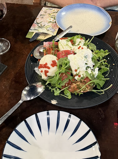 La comida nos ha gustado mucho. Hemos optado por pedir todo para compartir en el medio, ya que queríamos probar varias cosas y sabíamos que las raciones eran generosas. Nosotros hemos pedido: La ensalada de burrata con helado de parmesano, que estaba espectacular y el helado de daba un toque especial. Las croquetas, que es una ración con 8, dos de cada tipo. Hay de pulpo, de wakame, de cocido y de sepia y gambas. El atún, que para nosotros ha sido nuestro favorito, a pesar de que todo estaba muy muy bueno. Como he dicho antes, las raciones son abundantes, nosotros hemos salido llenos con lo que hemos pedido.