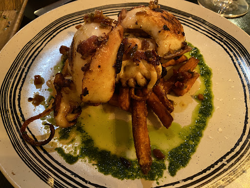 Read moreWe were on a trip to Spain from the US and a friend recommended we come here. It’s in the center of town, where all the restaurants open up for the night with outside dining and fill the square from 9pm onward. The proprietor was very accommodating and served us himself, recommending his favorite dishes on the menu. We had burrata al pesto con tomate, then taquitos de atun, and raviolis de secretos, all of which were amazing! We topped it off with churros and ice cream. I highly recommend if you...