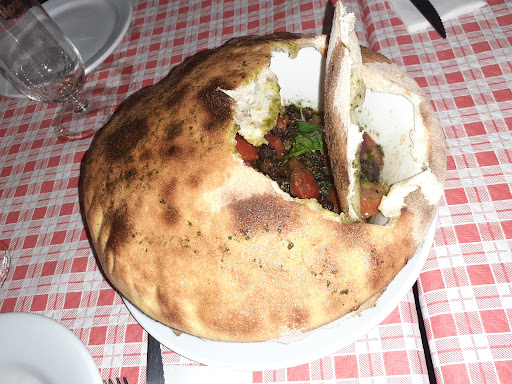 Respuesta a su comentario Hechos: Reservamos mesa a las 9, llegamos unos minutos antes, nos atendieron para tomar nota de la bebida y cuando la sirvieron hicimos el pedido de 1 entrante y 2 pizzas. El entrante vino unos 10’ después. Alrededor de las 9:30 se completa una de las mesas cercanas y tras la rutina de bebida, pedido, etc. se esperan a las pizzas. A esa hora cuando acaba de tomar nota, aviso a la camarera de que las pizzas están tardando. A las 9:45 vuelvo a insistir llamando a otra persona del servicio reclamando las pizzas. A las 10 salen pizzas ¡para la mesa que había llegado media hora más tarde! Llamo de nuevo a la camarera, mira el número de la mesa y se va. A los 5’ vuelve diciendo que las pizzas están en el horno (“díles que están en el horno”). En vista de ello me acerco a la barra a protestar por lo que ya me parecía una tomadura de pelo. Después de explicar toda la odisea, el cocinero pregunta qué mesa era y asume que ha habido un fallo. ¿Encargado? Desaparecido. Le digo al camarero que vamos a abandonar la mesa. Aún así salgo y me vuelvo a sentar. Sigue sin aparecer el encargado. Ya harto del menosprecio o falta de implicación de la persona encargada, llamo de nuevo a la camarera y avisamos, de nuevo, que abandonamos la mesa. De todo ello hay testigos puesto que una de las mesas cercanas estaba ocupada por una persona conocida que vió la situación desde el primer momento y lo comentamos. Otros testigos son la pareja joven que estaba a nuestras espaldas que también protestaban al encontrarse en la misma situación Salimos despacio por las escaleras del local esperando alguna reacción y aparece entonces una señora, con un libro en las manos llamando, le explicamos el tema y nos dice que esas cosas se hubieran solucionado hablando con ella. Lógicamente, le decimos que debería haber sido ella quien actuara, al menos después de tantas quejas. Su respuesta, literal: “Oiga señora, hacemos lo que podemos”. En vista de la situación me abro la cartera y saco 25: “Provolonne a la plancha 9,5€, jarra de cerveza de 1 litro 7€, una cerveza sin y una cola 0 que no sé lo que valen" y NO QUISO COGER EL DINERO, que se lo diera dentro. Como no pensaba volver a entrar le insistí: ¿Va a coger el dinero?” y de nuevo rehusó. No sé con qué intención, preguntó el nombre de la persona que reservó, que se le dijo ... aún teniendo la mesa reservada al nombre por el que preguntaba. En vista de ello y ante su actitud, nos fuimos. Vuelvo a insistir: Dígame qué le debo y se lo haré llegar. No se le ocurra pretender que pague las pizzas fantasma. En cuanto a su comentario: 1ª Lo que sobran son seudoprofesionales como Vd. incapaces de gestionar un servicio de comidas y que ni siquiera se identifican escondiéndose en el anonimato del grupo ¿Cree acaso que alguien se va sin pagar y da su nombre en los comentarios como yo he hecho? 2º En vista de los insultos y descalificaciones personales en un medio público de la trascendencia de internet, tomaré las medidas legales que considere oportunas. 3º Los únicos gestos de mala educación que se vieron fueron su actitud chulesca y la respuesta que dio a mi esposa. Espero que esta información llegue a su supervisor, al propietario o gerente si lo hay y analice la situación que se provocó por su ineptitud para solucionar una pequeña crisis. ¿Es así como tratan a los clientes...