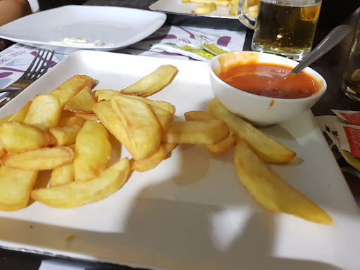 Igual hoy estaba el personal muy cansado por ser domingo y últimos días de la campaña de verano pero el trato ha sido una pena. Pedimos las bravas de la foto... El plato estaba lleno, no és el tema de cantidad que estén malas, pero en España eso no son bravas, son unas fritas de bolsa con una salsa Brava al lado, sumum de la vagancia, dime que no hay, que lo prefiero. Esto lo hemos combinado con un mixto de la casa, estaba rico e insisto cocinan correctamente, pero es que el plato ese también lleva patatas y la camarera ha sudado de avisar ¿Para qué? Me pides esto? Pues ahí lo llevas. Le pedimos que nos partiera el sándwich, por favor, que lo vamos a compartir. «se lo parten ustedes» Digo yo que tendría miedo a fastidiar la prestación del plato (nula, es un sándwich con patatas...) La formas en las que atendía, sin ser incorrectas, transmitían toda la desidia del mundo. Camareros mono-función. Las comandas la chica, servir los dos jóvenes, la cuenta al jefe que la saca según le sale de la maquinaria reproductiva (hasta tres veces la hemos tenido que pedir) Sin duda, puede que vuelva a hacer lo que siempre he hecho en ese local hasta la fecha. Tomarme una coca-cola, que son los únicos de la zona que te ponen un «algo» que no sean kikos cuando te tomas un refresco o cerveza. Triste decepción la mía ya que fuimos al convencer a mi mujer con un : total unas bravas y un sándwich no nos lo pueden hacer...