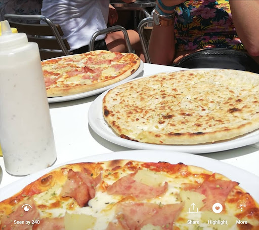 We stumbled across this restaurant whilst at the Fib Benicassim festival 2018. We sat outside and were immediately attended too. We ordered cheesy garlic bread, 2x hawaiian pizzas for a total of around €12-€15 euros.
