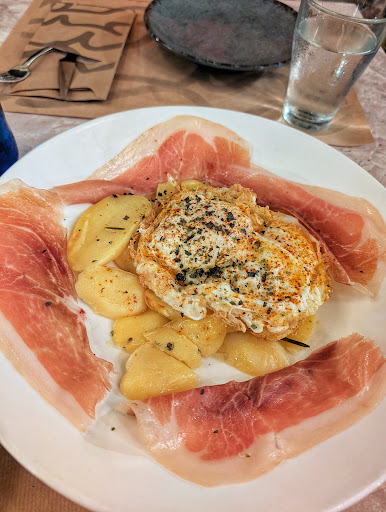 Llevaba tiempo queriendo ir a comer al Torreón porque me había quedado con ganas de probar las albóndigas del menú vegano. Desilusión al llegar porque han cambiado el menú y las albóndigas (que todo el mundo decía que estaban hiper buenas) ya no estaban y no las hacen. Ahora mismo los veganos solo tenemos esa opción prácticamente, el menú. En carta solo hay hummus, la hamburguesa vegana y poco o nada más. Así que sí o sí tienes que comer el menú vegano, que cuesta 14,75 euros y que todos los días de lunes a lunes es igual (al menos los fines de semana podría variar o cada semana). En estos momentos de primeros hay: ajoblanco, ensalada al-ándalus y tabouleh de quinoa y de segundos: hamburguesa vegetal, espaguetis o salteado de garbanzos; postre: ensalada de frutas o melón osmotizado. Pedimos un ajoblanco para empezar, yo no soy muy tiquismiquis con la comida pero tuvimos que devolverlo, sabía como si te metieras de golpe en la boca, una cabeza o dos de ajos, era incomible en serio, un ardor desde la garganta hasta el estómago... Cambiamos por la ensalada al-ándalus, todo un acierto. Estaba riquísima, aunque no es una ensalada sino rollitos rellenos de tajin. Presentación de diez este plato. De segundo escogimos dos platos diferentes, los espaguetis que estaban muy ricos y la hamburguesa que es demasiado blanda y se deshace, es como un paté, le falta consistencia y sabor. De postre melón osmotizado, menos mal que el mío llegó tarde y pude cambiar por ensalada de frutas (que me hicieron el favor de ponerme solo melón, sin osmotizar). El melón osmotizado sabe a lima pura y está pelín fuerte, los sabores a mí personalmente no me gustaron, pero.. para gustos colores. Llegué a preguntar si habían cambiado al cocinero porque de verdad, no me cuadraba nada, pero me dijeron que no, que van cambiando entre los diferentes restaurantes del mismo grupo pero que siempre son los mismos.