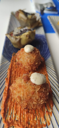 Read moreDe passage à Benicarlò, nous nous sommes arrêtés à ce restaurant suite à un avis négatif, laisser par une personne et la réponse du responsable au sujet d'une "Paella trop salé" Produit de la mer = iode (sel) La première approche fut un peu compliqué, mais l'on a pu avoir une dernière table sur la terrasse placée sur la promenade. Une fois installé, et apéritif commander, nous passons au repas. Plats régionaux et copieux. Je remercie le serveur, de sa bienveillance de nous avoir conseillé de ne pas prendre trop de plats d'un seul coup. Produits frais. Plats copieux. Bien exécuté. Le sel est bien d'origine naturel de part la provenance des produits de la mer. Nous avons passé une excellente soirée et consommé plus que de raisonnable. Comprenant que notre espagnol était très basique, le serveur a pris le temps au cours du repas, de nous expliquer les plats, malgrés le monde. ATTENTION établissement non adapté aux fauteuils roulant, escalier pour accéder au toilettes. Repas uniquement sur la terrasse de la promenade pour les Personnes...
