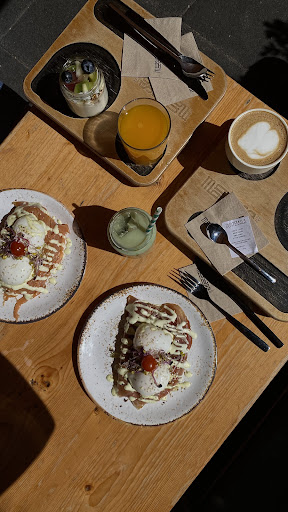 Read moreNunca pongo reseñas negativas porque también me dedico a la hostelería, sé que una persona se puede equivocar, tener un mal día, etc. pero creo que en este caso, la dinámica del personal es así siempre y es una pena, porque te destrozan la experiencia. Fuimos porque nos lo habían recomendado mucho por sus cafés de especialidad. Es comprensible que tuviéramos que esperar porque es domingo y había mucha gente en todos lados, así que le preguntamos educadamente a una camarera por una mesa para 2, nos dijo que teníamos que esperar en una cola para la mesa. Nada más colocarnos allí viene su compañera y pregunta quién estaba esperando una mesa porque ya tenían un par libres, preguntamos a todo el mundo nosotras mismas y todos los que estaban esperando era para llevar. La chica que nos dijo de ponernos en la cola al vernos sentarnos ya nos miraba con cara rara. Su compañera que nos había indicado la mesa fue la que nos atendió (pedimos dos desayunos, un flat white con leche sin lactosa y un iced matcha latte con leche sin lactosa). Después de esperar bastante, que es comprensible, nos traen un smoothie o un batido y le indicamos que nosotras no habíamos pedido eso. A los dos minutos vino la camarera y diciendo “un café con leche con leche normal” y le dije que yo había pedido un flat white (hay una diferencia entre un flat white y un café con leche normal) y era con leche sin lactosa, a lo que la camarera suspira y me dice “si tú me has pedido con leche sin lactosa es sin lactosa, mira te lo puedo enseñar en el comandero”. Repito que yo también trabajo en la hostelería y entiendo que por error te puedes llevar una bebida a otra mesa, como le había pasado antes a su compañera, incluso aunque esté bien comandado. En ningún momento hubo ni un perdona, ni un lo siento. Finalmente nos traen todo y la verdad que sin más, tanto el desayuno como el café. Un flat white es mitad café, doble carga de espresso y mitad leche, y este casi solo sabía a leche. Al final pedimos la cuenta, mi amiga le paga con efectivo y para rematar le traen mal en cambio. Se lo indicamos a la camarera y contesta “voy a mirar a ver”. Otra vez, ni un disculpa ni un lo siento. Después de esperar un rato más para el cambio correcto, nos lo trae la chica que se había llevado el dinero en un principio, y otra vez, ni una disculpa, ni un lo siento por la equivocación. Un desastre de principio a fin, lo entendería si por lo menos tuvieran una actitud amable,...