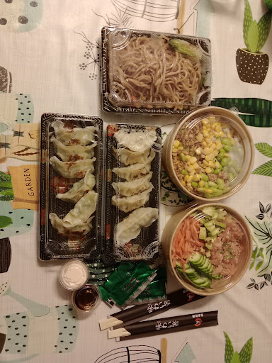 Delivery from Uber Eats under Poke Nou. We really enjoyed it overall, such a nice change to have for a Friday night takeaway instead of the usual fast food burger places. We liked the chicken gyozas more than the prawn ones but that's personal preference. We both enjoyed our poke bowls & liked the wee separate sauce. The only criticism is I think the noodles were too greasy & quite a small portion, I like that they had veggies through...