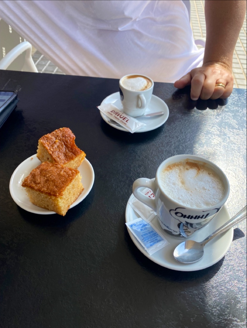 Read moreBest coffee so far. The owner (who is very nice) uses great quality coffee beans compared to competitors around his store. The Cortado and cafe con leche are both very good - strong, nice depth of flavour without being too bitter. When you order a coffee, the waiter is also kind enough to give a free cake - it takes like a homemade honey cake and it was spectacular. To eat we ordered a bocadilla with Spanish ham, manchego cheese and tomato which I highly recommend. The portions size was very reasonable...