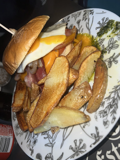 Mi experiencia lamentable , pedimos y nos recalcan que las patatas son caseras como si fuera a estar buenas , grasientas algunas medio crudas otras medio quemadas y bastantes con negreces que traen a veces los propios tubérculos traen las salchipapas para la niña y no traen ni bebida al cabo del rato me levanto para pedir las bebidas porque me parecía excesivo y me dice que ahora me las traía y me encuentro a su compañera en la gasolinera de enfrente resulta que estaba comprando una botellita de agua que le habíamos pedido , no tenían ni agua la traen de la gasolinera y no nos ponen ni vaso , le pido una hamburguesa sin verdura y a pesar que éramos los únicos clientes del local ni así prestaron atención y con verdura la trajeron , la hamburguesa normalita patatas lamentables bocadillo serranito carne ennegrecida como revolcada en una plancha sucia y ya para colmar el vaso voy al baño toda la taza cagada y llena de mierda y 2 cucarachas rondando por hay y las dos ( trabajadoras ) por decir que son trabajadoras porque tenían muchas mesas llenas de vasos platos por recoger y estaban sentadas tacándose el papo de chachara , experiencia lamentable me han dolió los 35 euros que me he gastado a disgusto y espero que no me siente mal la comida que me he comido a disgusto por no tirar la comida , sinceramente me resistí de levantarme y haberme ido sin pagar por no tener lio pero era lo que se merecían . quien lea esto no vayáis es...