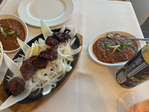 We were warmly welcomed with complimentary poppadoms and chutneys while browsing the menu — a nice touch. For starters, the chicken tikka, lamb sheek kebab, and onion bhajis were all spot on. Perfectly seasoned, freshly cooked, and full of flavour.