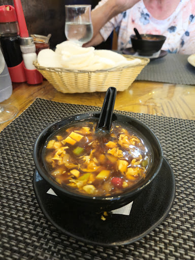 Fancied a Chinese while in Benidorm as this was the only one we could find thought we'd try it. The atmosphere was non existent but we decided to stay and have the special menu for 2 at €22 (cheap that should of been a warning) it consisted of chineese salad to start with what i can only descrbe as lettuce and something that resembled shredded plastic, 2 rather over large sring rolls, egg fried rice a selection of 3 meat dishes one of which was beef in black bean if it was even beef it didnt look like beef and the texture and taste was nothing like beef only ate a little of this OH had non the other meat dishes were ok plus a bottle of wine and dessert or coffee. Overall thought is you get what you pay for! only I got more than expected as was ill the next day with dodgy stomach and couldn't leave the hotel ruined our last day...