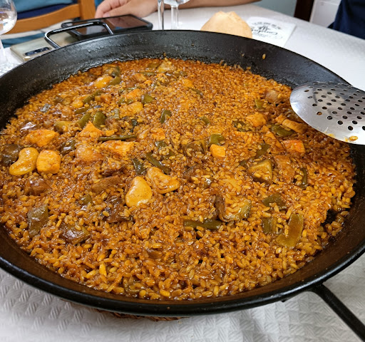 Fuimos a comer a este restaurante en el centro de Benidorm algunas elaboraciones de arroz. El ambiente y decoración es tradicional, con un buen ambiente, nada de lujos. El servicio fue atento y rápido. Probamos un arroz a banda (algo salado) y los entrantes del menú arrocero estaban bien, pero el arroz caldoso de rape y la tarta de plátano estaban exquisitos. La relación cantidad, calidad y precio de la comida son acordes, muy buenos para tratarse de Benidorm y los engaños que puedes encontrarte en ciertos restaurantes. Recomendaría este sitio para comer a familias y sin duda el menú arrocero con arroz caldoso de rape. Recomendable reservar antes, para no tener que esperar por la...