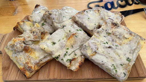 This was a mistake we walked with no one to greet us, we sat down and my wife was shouted at from approximately 5 5yards away from where we eating, we replied yes, we ordered some water and reviewed the menu, the previous reviews advised to try the cheesy garlic bread and the pizza.