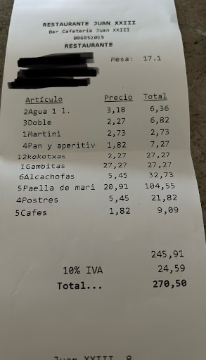 Fuimos a comer por recomendación y de primeras el restaurantes nos gustó. La comida muy bien, producto de calidad. El servicio nos decepcionó y mucho. Pedimos 3 entrantes para compartir y un arroz al centro (para 4, pero el camarero nos dijo que mejor 5, a pesar de decirle que comíamos poco). Lo que no nos dijeron es que las alcachofas que pedimos para compartir las iban a poner en platos individuales para cobrarnos 6 raciones en lugar de 3. Pasamos a los postres y viendo el tema…. Pedimos 2 (aunque el nos dijo 3 y le dijimos que no, que dos). Al traerlos flipamos con el tamaño de la tarta de queso (de hecho lo dijimos). Error nuestro, por ir con prisas no revisar antes la cuenta porque para nuestra sorpresa tenemos; Cobrado el pan (lo puedo entender aunque la mitad de la mesa no quería y se quedó ahí) y el aperitivo (me parece de mal gusto cuando nadie lo pide y lo vas a cobrar). Cobrados 4 postres en lugar de 2. Y a esto sumamos el plato de más de arroz que él decidió (cierto que avisó), pero no avisó de que las alcachofas eran un plato para cada uno no para compartir. En definitiva: UNA VERGÜENZA DE SERVICIO. Sensación de engaño total. A nosotros este señor no nos...