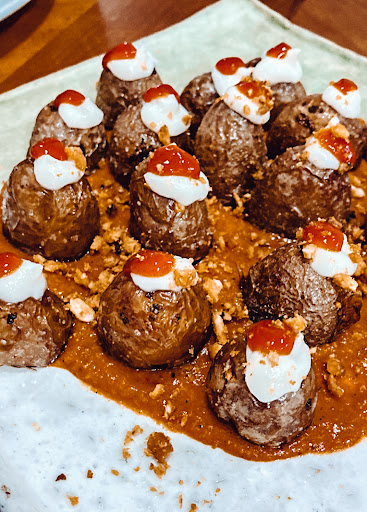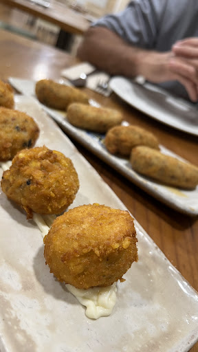 Pedimos varias tapas que estaban bien, pero después la camarera insistió bastante en que pidiéramos algo más, sugiriendo carne o pescado, hasta el punto de hacernos sentir que estábamos pidiendo poco. Finalmente optamos por las costillas a la miel, el plato más caro de la noche, y fue lo que menos nos gustó: las costillas estaban secas, sin sabor y nada tiernas. De hecho, dejamos más de la mitad en el plato porque no merecían la pena.