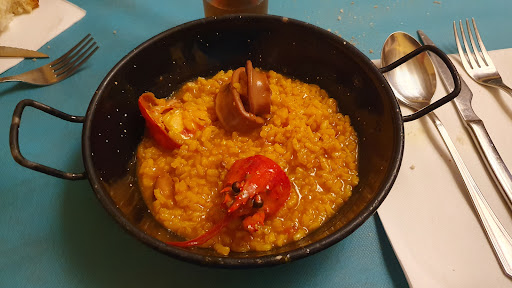 Platos con una elaboración, calidad y presentación aceptables: arroz caldoso con bogavante y pota muy sabroso, al igual que la ensaladilla lo que contrasta con unas carnes algo insípidas o con presentación mejorable (el secreto y la pluma eran trozos muy grandes y poco apetecibles; cortado en tiras quizá sea difícil hacerlo a la brasa pero es mas agradable a la vista).