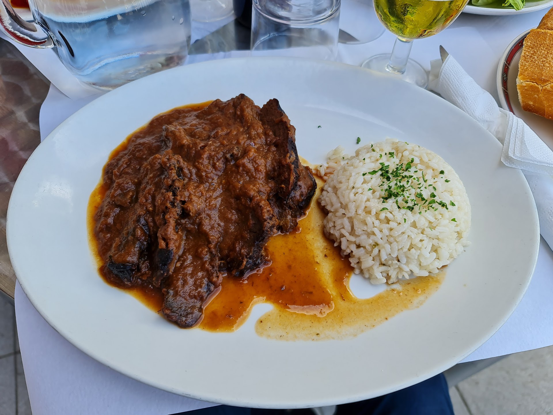 Restaurant très agréable, que ce soit au niveau du personnel (deux serveuses très agréables et sympathiques ce jour-là) mais également au niveau des plats servis. Une carte complète et claire, un service rapide et un très beau cadre autour de nous, la salle intérieure assez chaleureuse et grande, les gens ne sont pas entassés. L'attente est raisonnable, nous nous sommes présentés entre midi et deux et seulement une trentaine de minute a peine avant d'avoir une table de libre là où les restaurants alentours affichaient des temps d'attente de plus d'une heure. Nous y reviendrons sans problèmes et le recommandons très...