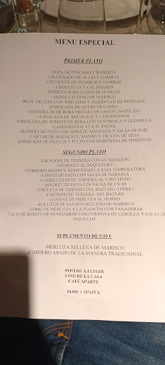 Menú currante sí, restaurante para disfrutar pues... francamente no. Lunes de agosto, a la una, unas 20 mesas ya ocupadas, currantes y familias con niños (que corretean y gritan sin que nadie, excepto al parecer...nosotros, se inmute). Nos traen el menú del día, barato y lógicamente humilde (ensalada, espaguetis, etc). Nosotros queríamos el menú especial del que tan bien hablan en internet: pues no lo hacen hoy, vaya. Estupendo. ¿carta? El camarero se sorprende pero nos la trae (será que no la pide nadie nunca, imaginamos). La carta algo escasa, pocas opciones y caras. No compensa. Nos resignamos pues y pedimos menú. Dado el ambiente de patio de colegio y siendo menú humilde...deberíamos habernos ido. Pero como mucha gente habla bien...de este restaurante...metimos la pata quedándonos. Crema de verduras (correcta sin más), fritos (muy buenas las croquetas, muy malos los calamares, parecen Findus). Vino Montegoza tinto, bien para este menú. Chuleta de cerdo secas, demasiado hechas con una salsa de roquefort buena, bacalao estropajoso y salado que al menos si sabe a bacalao. De 100 a 150 personas mínimo en la sala, críos gritando, ambiente pésimo para una comida tranquila. Siete o ocho camareros rápidos pero que van a lo suyo, empatía mínima. Los postres lo único correcto junto con las croquetas: samingotxo y arroz con leche, cremosos, delicados. Para rematar el café malo tambien, largo de más y aguado. En resumen (si siempre es así), un sitio para menú currante normal (que a nosotros nos encantaría durante el año, no en vacaciones), con mucho (pero mucho) ruido, buena atención y nada pero nada recomendable para el que quiera comer platos trabajados en un ambiente tranquilo. Dado que tienen sitio de sobras, deberían (si les interesa, claro) hacer dos salas bien aisladas con dos ambientes diferentes. O al menos que siempre hubiese dos menús (uno currante y otro un poco mejor) para que compense algo comer en un verdadero patio de colegio. Porque comer aquí en día laborable ese menú y con ese jaleo fue un error. Y pensar que en nuestro único día en la zona renunciamos a La Basque por probar Zalain...Muy...