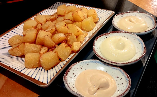 Para empezar, unas Patatas Bravas muy normalitas, nada del otro mundo. Ración para 2, muy correcta. Acompañadas de 3 salsas: mayonesa, allioli, mayonesa con salsa Perrins. A 7,50€, para lo que son ... no sé Rick, algo caras.