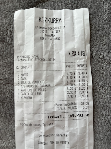 We were on holiday having dinner with my son Roly and Giovy, and a complete success. The best potato stuffed very good. We ordered skewers and all spectacular, we also tried more dishes and as usual all remarkable, the best attention A GastroBar to repeat....