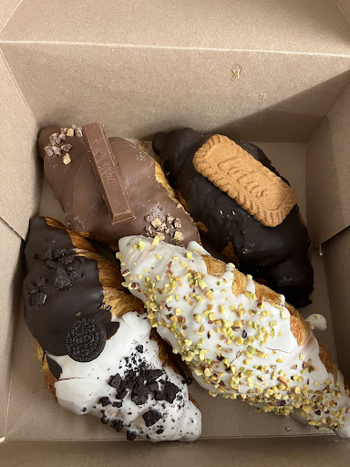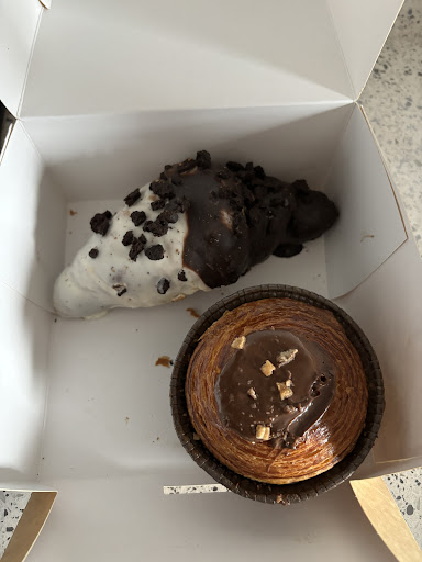 Read moreHemos ido esta mañana a comprar algo bueno para comer a las 12:30 de la mañana y ya quedaban pocas cosas ( normal para ser sábado) había mucha gente pero la fila iba rápido!! Hemos cogido un cruasan de oreo y una magdalena rellena de kit-kat para llevar El cruasán estaba muy bueno pero muy relleno y empalaga mucho aún así le damos un 7/10 la magdalena no nos ha gustado tenía aspecto de hojaldre pero la masa no hemos sabido adivinar que era por qué no nos ha gustado y el sabor a kit-kat no se apreciaba era más nutella le damos un 4/10. La chica que nos ha entendido muy maja y rápida!! No me ha gustado que no ponga el precio de los productos y al pagar con tarjeta no me haya dado ni el ticket ni la copia ni me haya preguntado… El precio total 7,50€ bastante caro El local muy bonito y hay mesas para tomar allí y terraza...