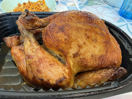 Un pollo muy rico, bien asado, jugoso, sabroso, y además de su propio jugo y un toque ahumado le acompaña una salsa a elegir entre varias opciones (mostaza, barbacoa, alioli, entre otras). El dependiente es muy simpático y atento con el cliente, además de educado y amable. Tienen opciones de acompañamiento como patatas asadas o panaderas incluidas todo por un precio muy asequible para la calidad de producto y servicio ofrecido.