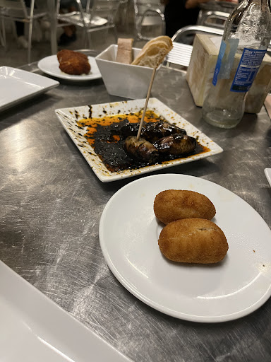 A great little place to get some tapas and wine at a great price. We had the croquettes, fried squid strip, and artichoke and all of them were great. The artichoke was a typical marinated dish with olive oil which had a nice flavor. The croquettes tasted like fried corned beef which was surprisingly good. However, those fried squid strips were amazing; soft and tender that wasn't overly battered. Add the wine and a nice place to take in the atmosphere and you have a winner in...