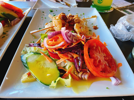 We received a very cordial welcome on arrival by our friendly and knowledgeable server, Ahmed, who recommended a lovely shaded and draught-free area in which to sit abd enjoy the surroundings. We were very pleased with our choices of the king prawn starter followed by grilled fish and braised goat mains which we shared. The food was excellent…and plentiful!