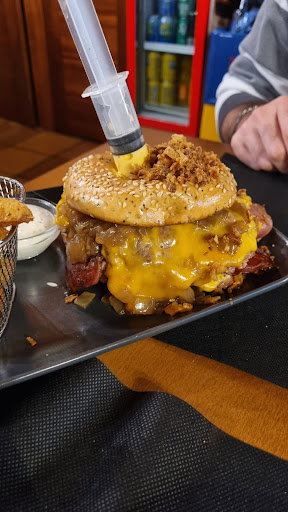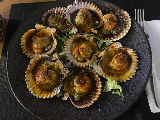 This little bar/restaurant, tucked away in a tiny street in the centre of Betanzos is an absolute gem. My four fellow diners independently declared their burgers as ‘The Best Burger I Have Ever Had!’ and my Goats’ Cheese salad was certainly the most beautiful goats cheese I have ever eaten, with olives, walnuts salad & dressing. The scallops, octopus, & prawns in filo pastry twists were also declared delicious & my Betanzos Tortilla was gorgeous & juicy from the onions inside & perfectly cooked. The waiter was very friendly and dealt very well with our bad Spanish (he spoke very good English) and he spoke in Spanish to my Son who is doing A Level Spanish, which my son enjoyed very much. I was able to bring my leftover salad (it was huge!) & tortilla home and we all left very happy. Highly...