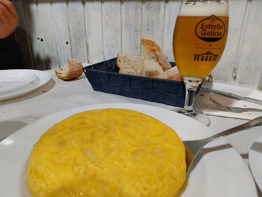 Read moreLo primero: si quieres garantizarte una mesa, llama para reservar. Hay apenas cinco mesas. El local -en nuestra visita- es llevado por dos personas: ella atiende las mesas, él cocina. Magnífica labor en ambos casos. Pedimos pulpo, más que correcto de textura y sabor. Por poner una sola pega, quizá demasiado aceite. Pero untamos pan hasta hartarnos, así que cero problemas. La tortilla de patatas es imprescindible. Deliciosa. Igual que el raxo (lomo de cerdo) con patatas fritas. Todo hecho al momento. Hay poca duda porque hasta se escuchaba como el cocinero batía los huevos. Los postres, buenos y a precios razonables y no los seis euros que de media ya cobran en casi cualquier sitio por unas natillas o un flan. Con bebidas, la cosa para cuatro sale por poco más de 50€. Si volvemos,...
