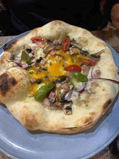 Reasons for 4 stars The service is very friendly and helpful. The food. We are vegetarians, so we had patatas bravas (delicious sauces), tomato salad (very good), Pizza, eggs and dessert. It was very tasty, the CHEESECAKE is a DELIGHT, don't miss it! Tasty and cool white wine! The prices are good.