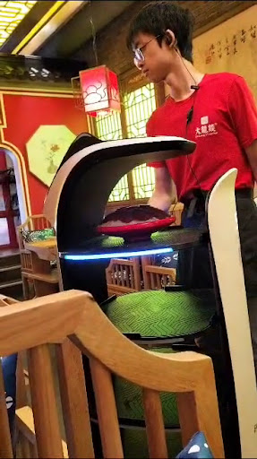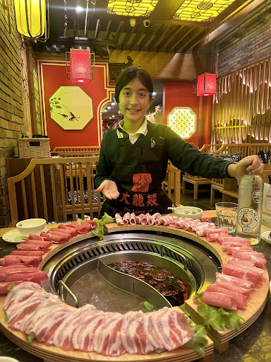 Read moreExperiencia inolvidable, sobre todo por las risas de realizar una actividad que no haces nunca. Hace tiempo quería conocer este sitio, sobre todo por su originalidad. Apenas llegamos vemos la decoración al más estilo chino, típico dragón colgado en el techo,colores llamativos y una especie de asientos de reinado, el menú antes de entrar y las indicaciones para ordenar. Bien preparado si es que no te apetece entrar a preguntar de qué va. Entras , y todo perfectamente ordenado y listo para comenzar a ordenar, viene el camarero con las instrucciones, precios de los Hot Pot , entremeses, caldos y tiempo de preparación de cada ingrediente que vas a utilizar en la olla. Elegimos armarlo libremente, con unos 6 ingredientes (cada uno tiene su precio) ,metimos carne, verduras , setas y fideos ramen y una mazorca. Ellos traen el caldo ,lo colocan en la olla que está en la mesa y empieza el show. Primero calcular el tiempo de preparación de cada ingrediente y luego no quemarte. Viene un robot gatuno jajaja! Sisi, un robot, con bandejas y los ingredientes que pediste y el camarero va colocandolo en la mesa y explicando cómo cocinarlos,tiempo de cocción y cómo servir. A medida que se va haciendo vas sirviendo lo que te apetece comer. Atrás tienen un pequeño espacio para preparar salsas, las haces tú y arriba tienes unos ejemplos de mezclas para hacer. El postre es libre y te lo sirves de una nevera, solo hay fruta fresca de temporada, a lo que me parece genial. Sobra mucha comida en la olla , es prácticamente imposible terminarla. Gastamos 53€ entre dos. Algo caro por la calidad de los productos, que son congelados. Pero vale la pena la experiencia. Esto queda muy cerca del Metro de Indautxu y enfrente a la Alhóndiga. Disfruta la experiencia y échate unas risas sin...