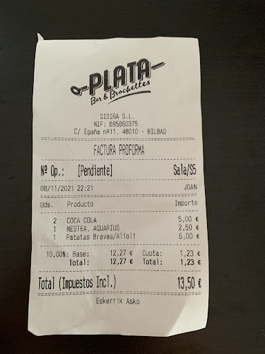 Además de esto, acerca del servicio, acudimos ya que en reseñas habíamos visto que eran de los mejores sitios de bravas en Bilbao, sin embargo la ración distaba mucho de lo leído, encontrando una porción pequeña, y patatas y salsa de lo más estándar.