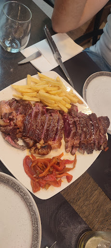 Ayer fuimos a cenar a este restaurante, ya había leído reseñas de su comida y el buen servicio pero quería verlo en primera persona, fuimos un grupo de 6 y un perro, reserve el mismo día por la mañana para las 14:30, les dije que iba con perro que si habría algún problema o si me ponían en terraza, es un restaurante que en la zona de comedor dejan pasar con perro, no os sorprendáis por qué desde el 2023 con la ley animal se puede pero aún estando de hace años en muchos sitios se sigue sin hacer, de todas maneras no hay problema si no se puediese iríamos a terraza, la comida.... Increíble pedimos el chuletón de lomo alto y estaba increíble, jugoso, buena cantidad, viene con ensalada y patatas come muy bien 2-3 pero nosotros como somos unos locos pedimos 3 para 5 personas pudimos con ellos igual, también pedimos dos chorizos que viene partido en rodajas con unas pocas patatas y calamares, jugosos, buen sabor, pedimos postre, el que estaba relleno de crema y el sorbete de limón, muy rico todo, la atención increíble, nos atendió un hombre y una mujer, la mujer nos recomendaba platos y el hombre creaba un ambiente muy familiar y agradable, nos hablaba de la carne, que de donde veníamos, etc, iban pasando por la mesa cada rato por si nos faltaba algo, por si nos pasaba el filete más, o simplemente para ver qué esté todo en orden, ya os digo que esto sí vale la pena volver, buena calidad, buena atención, y deja pasar con animales, increíble sitio la verdad, muchas gracias y ojalá que vuelva a Bilbao solamente para volver a comer...