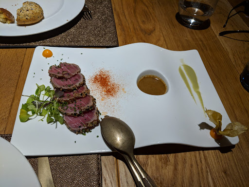 Read moreUna estrella por: El pan lo cobran, y sin embargo no viene en la carta, y tampoco te lo comentan los camareros cuando te lo sacan, y eso es ILEGAL. Eso sí, cómo de otro modo saldrías con hambre, a precio razonable te colocan 4 trozos de pan muy ricos y variados por cabeza (1,70+IVA) con lo que al final de la comida ya no te comerías al maitre por los pies, que sin pan, ni lo dudes. Una buena argucia hostelera, por supuesto. Los precios de carta deben tener el IVA incluido, y sin embargo los precios de los platos son redondos (16€, 19€, 28€...) pero viene al final de la página "IVA no incluido", por lo que si, como nosotros, no te das cuenta, al final pagas un 10% más, y eso TAMBIÉN ES ILEGAL, por mucho que diga el jefe de sala que hasta ahora nadie se ha quejado (espero que desde ahora sí lo hagáis). Lo hablamos al final con dicho responsable de sala (una vez ya abonada la cuenta, y bastante descontentos), y nos alega que es que ha habido mucho cambio de leyes últimamente (falso, la ley es de 2006), que nadie se ha quejado hasta ahora (¿y?), y que es legal porque viene lo de IVA no incluido al final (falso, sigue siendo ilegal, que no os camelen). Nos indican (y sin nosotros haberlo pedido, pues sólo nos estábamos quejando), que nos devuelven el IVA y el precio del pan, y ya cuando nos vamos a ir tras eso, me dicen que si se pueden quedar con el ticket y tal, así, de un modo informal... Y como no voy a ir a denunciar, y la verdad no me he dado cuenta hasta más tarde de la treta, se lo he dado, pero claramente ha sido una estrategia para que no denunciemos a consumo, pues sin ticket (y foto de la carta o menú, claro), la denuncia no prosperaría, pero si les denuncias a consumo con justificantes, se les puede caer el pelo. Recomiendo nunca entregar el ticket en estos casos, aunque yo lo he dado inocentemente, y por supuesto, me arrepiento. Por otro lado, y por comentar, las alubias de entrantes muy ricas (la foto es de media ración, porque en cocina amablemente nos las han puesto en dos platos al ser para compartir con otro entrante), las pagas, pero muy ricas, la verdad. En cuanto al Tataki (13 €+IVA) y las kokotxas (28 €+IVA), escasísimas. Las kokotxas, 8 contadas (y tamaño medianas o pequeñas), y el Tataki, 5 rodajas pequeñas y como papel de fumar (que si buscáis Tataki en internet por curiosear en Google, generalmente muestran 8 trozos de un grosor medio, con lo que está ración se queda en muy escasa). Aunque el trato y los productos son muy buenos, el precio es excesivo en general y no vale lo que cuesta, y los precios deben cobrarse conforme a la legislación española, y no saltársela a la torera. (Véase la Ley 44/2006, de 29...