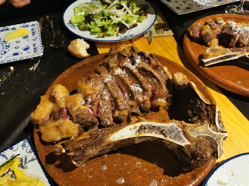 Se nota que llevan poco tiempo abiertos y hay bastantes flecos que pulir. Respecto a la comida, las croquetas de txistorra muy ricas, el pulpo a feira en su punto perfecto y muy bueno, los mejillones picantes son excesivamente picantes y no saben a nada más que a picante, y la tabla de ibéricos pasable aunque el jamón está partido demasiado gordo. Con los segundos platos, el rodaballo para dos bastante rico de sabor aunque la carne no se soltaba sola de la espina por lo que le faltaba hacer un poquito más, y la chuleta superior de supuesta maduración, regulera. No tiene el sabor de una carne madurada y la sirven en plato de barro que no permite que cada uno le pueda dar el punto deseado a la carne lo que me parece que es un inconveniente cuando la chuleta es de 1,5 kilos para compartir. Y aquí viene lo que probablemente ha sido el mayor de los problemas y ha hecho que analicemos todo mucho más. El servicio ha sido bastante malo, y estamos hablando de una comida de carta, no de menú. Cuando hemos llegado éramos de las primeras mesas por lo que estaban más relajados pero conforme se ha llenado el comedor ya han perdido el control. La chuleta se sirve con patatas fritas, pimientos y ensalada. Nos han servido la chuleta y cuando ya habíamos terminado la carne, y después de reclamarlo tres veces, han llegado las patatas fritas, pimientos y ensalada. Le he pedido a la jefa de sala que me pusiera el rodaballo que había sobrado junto con la ensalada para llevar y le he manifestado mi malestar con el servicio de la carne, a lo que ha respondido, que el camarero era nuevo. Hombre! Yo creo que el problema es de cocina pero bueno, como siempre a lo fácil, el camarero nuevo. He tenido que reclamar la ensalada cuatro veces porque no me la traían y una de las camareras me ha contestado que como estaba arreglada se me iba a echar a perder. Si no te importa me dejas que lo decida yo, era una ensalada que no se ha tocado absolutamente nada y me la quiero llevar. Después de mucho esperar ya me la han traído. Y bueno, con ganas de irnos. Por último voy a hacer un par de comentarios sobre el local. No hay aire acondicionado, un pingüino con los tubos por allí en medio lo cuál da una imagen un tanto peculiar. Frente a nuestra mesa estaba en la pared el cuadro de luz sin tapa ni nada, lo que tampoco da muy buena imagen. Da la sensación de haber abierto corriendo y sin terminar detalles. Y por último el baño, madre mía qué baño!!! Uno averiado con la tapa tirada por el suelo, el otro diminuto que hay que hacer malabares para entrar con una niña, el espejo roto,... en fin. Los detalles importan y mucho!! En resumen, hay muchos más sitios mejores para comer...