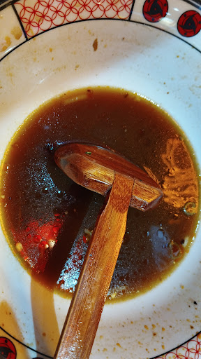 Los entrates un 8,5/10 estaban muy buenos, tanto las gyozas que pedimos como el bao de pato, lo decepcionante a sido el ramen, he comido en otros sitios de ramen, en el cual cuando los pruebas te llega un sabor del caldo y de los noodles increible, en este el caldo era insípido, al principo te sabe bien por todos los toppings que tiene, pero a medida que comes los toppings el caldo empieza a no saberte a nada, a tal punto que fue la primera vez que dejo el caldo de un ramen sin terminar y por el precio que era 13,80 me ha dolido bastante, en el resto todo genial, pero para un sitio donde su plato principal es un ramen, ha doiido un poco