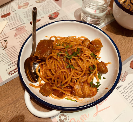 Respecto a la comida, les doy un 10. La Ensalada de burrata (hecha a mano en Bilbao por Biribil Brothers) con inyección de trufa o pesto genovés y focaccia, es un espectáculo. Respecto a la pasta que pedimos en concreto Pasta Al Ragù Calabrese, no nos ha gustado muchísimo la verdad, la próxima vez elegiremos la carbonara. Las pinsas muy ricas, esta vez cogimos Otto y Fernando. Si me gustaría señalar que nos hemos ido un poco desilusionados con nuestra experiencia de hoy… la espera entre platos ha sido excesiva, al preguntar por ese retraso nos han indicado que había habido un problema en la cocina, ante esto lo hemos comprendido y hemos esperado pacientemente, pero al ver qué mesas que han entrado más tarde que nosotros se iban atendiendo antes que a nosotros y que incluso han acabado de comer antes…nos ha molestado porque ya no se trata de un problema de cocina…creo de verdad que se habían olvidado de nuestra mesa…la sospecha se ha confirmado al ver que también se les ha olvidado traer uno de los postres…e incluso se les ha tenido que solicitar hasta 3 veces una botella de agua…la chica que nos ha atendido ha sido muy educada y ha intentado salvar la situación de muy buenas formas, pero las cosas como son…se han olvidado de nosotros, se han puesto a limpiar la cocina cuando aún estábamos comiendo y uno de los empleados se ha puesto a comer delante nuestra…todo muy poco profesional cuando aún nosotros no teníamos todos los platos..Me da pena tener que poner esta reseña soy una clienta fiel a sus pinsas, y siempre he recomendado Casa Leotta a todas las personas que vienen de fuera a Bilbao..pero es que hoy, precisamente no ha sido su dia. Sin duda volveremos para quitar esta mala sensación, a fin de cuentas todos somos personas y un mal día lo tiene cualquiera. Me gustaría tb añadir que han tenido un detalle bonito, celebrábamos un cumple, y nos han sacado uno de los postres con dos velas. En fin, en resumen, experiencia de hoy respecto a la atencion muy deficiente…. La comida estaba rica..pero todo es un conjunto…por eso pongo 2...