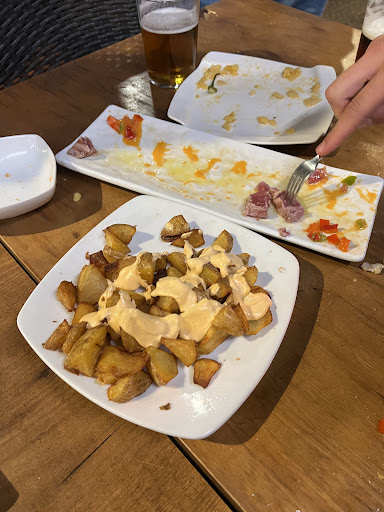 También pedimos unos pintxos morunos y unas patatas bravas (que igual esta última no volvería a pedir porque encima la salsa picaba mucho).