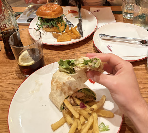 Read moreFirst impression from menu and interior was very good. We ordered a burger plus wrap. The prices are not high but on the other hand the size of burger wasn’t somehow gargantuan. We asked the waitress for wrap without cheese as I am intolerant he nickt and wrote it down. During the last bites I found out that I am eating cheese. That made me quite angry. Of course I survived but all we got was just sorry. If there would be stronger allergic he could have of course bigger problems. For this and size I give less stars. Cannot complain about the taste...