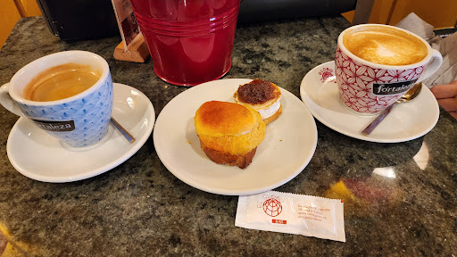 Read moreWe thought of stopping by only for a cup of coffee at 10am but stayed on for a long time as the fresh pintxos started to be displayed at the counter. Cannot resist the unique pintxos they offer here - the local goat cheese with italian tomato and basil, black pudding with peanuts, gratin spider crab, fried baby squid with sweet onion, gratin squid, basque cheese with apple and walnut.. the combination is unique and delicious! It turned out that coming here early to sample the pintxos is a relaxing idea. There was just a smattering of folks having one pintxos and coffee before lunch. We did come back in the evening but it was incredibly crowded - inside and outside the street. By the way the staff though efficient, is pretty curt. But I'd go there again despite the service for the unique pintxos. The cheesecake is also...