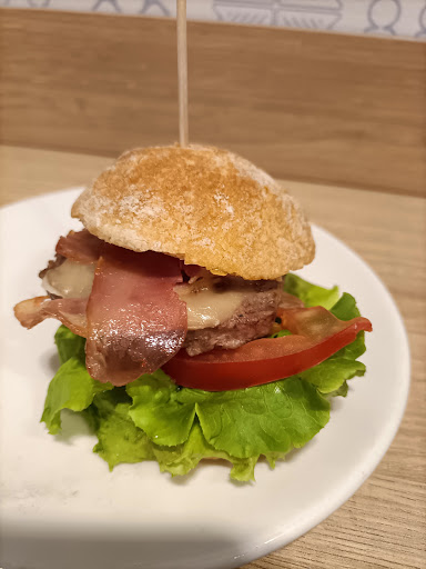 También pedimos un pincho de hamburguesa que estaba muy rico, me gustó mucho el pan y el queso que llevaba.