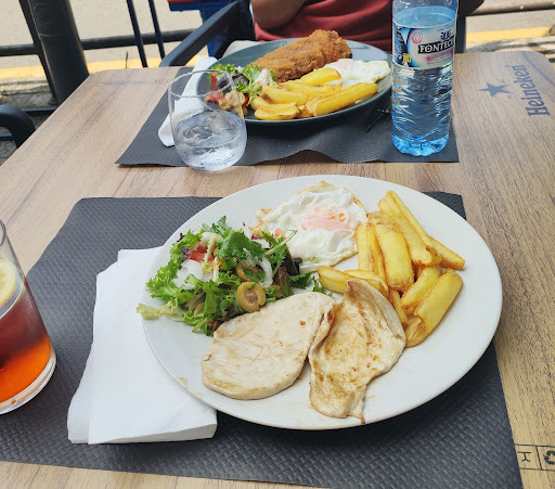 Read moreHe venido otras veces y he comido mejor que el menu de hoy (lunes). No Se si sera el cocinero o que. El entrante era un calamar a la andaluza, y cuando digo uno quiero decir 1. Es un entrante asi que no voi a decir nada. El primero: ensalada de tomates rosas con albaca y mozzarella. Adjuntare foto porque poner 5 rodajas de tomate grande con 5 rodajitas de mozzarella y que el plato te quede salado... Me resulta dificil. Segundo: medallones de solomillo con picada de ajos y champis y una especie de puré de patatas. Los champis ardiendo el solomillo templado y el pure frio... Los ajitos picados quemados, porque sabia bastante agrio. De postre (aunque no lo pedi) me sorprendio ver medio gintonic afrutado, yo elegi el sorbete de manzana y fresas que no estaba mal tampoco. Todo...