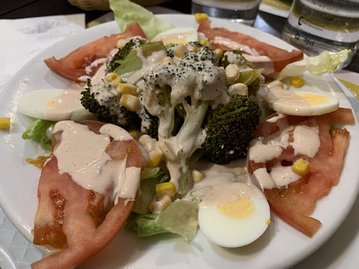 Read moreGreat vegetarian and vegan food restaurant. The food is excellent and you won't leave with an empty stomach, as they will serve you a salad, soup, main course and dessert for around 14 EUR. The price goes up 50 cents every year though, so it started to become a little expensive to go regularly. The interior is not something you'll find attractive, although it is original. The walls are full of paintings from different artists that you can buy, but it makes for a very crowded interior. They have a second room in the back which is even worse designed and doesn't feel cozy at all. But then again, for a quick mid-day meal, I don't care that much. Service is quick and the owner is always making jokes and wishing you...