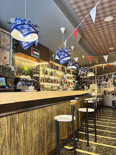 The place is a must-go if u want to eat delicious local food, spend a nice time in a nice ambiance! The waiter speaks English and is very helpful. We bumped into this place when we were looking for an open restaurant around 5 p.m., and we were starving. He told us that on Fridays and Saturdays, restaurants close kitchens between 4 and 7.30. Sadly, we only had a capuccino. It was a very good balance of coffee and milk. Later, we got back to the place (mainly because of the friendly behavior of the waiter) and ate here. What a great decision it was! We ordered half a portion of meatballs with sauce (albondigas), stuffed peppers (pimientos rellenos), bakalao (cod fish in pepper sauce), Bilbao style txakoli and cheesecake. The waiter explained which dishes were local and the kinds of txakoli before we ordered. As for the taste, meatballs had a great sauce (felt homemade as the waiter claimed), stufffed peppers were so creamy (definitely to be tried out), cod's sauce was also super tasty. Cheesecake was much different than the ones i ate before. It came warm, and it wasn't so sweet. Txakoli was dry but tasty (i normally prefer semidry). Definitely would come back...