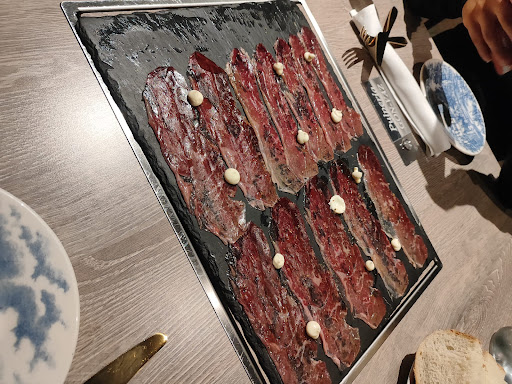 First impression wasn’t that positive because the young waiter didn’t want to welcome us for lunch and called another one for approval. We were seating inside although all the tables outside on the terrace were empty and stayed this way (except one) until we left. We were given the table just as you step outside. When our main waiter came to give us the menus, take the order and bring the food the atmosphere changed and he really made us feel special. Thank you for the warm and kind service, it was very fun to eat here. We’ve ordered the polpo gallega to share, one tuna tartar and tataki. The food itself is a work of art and...