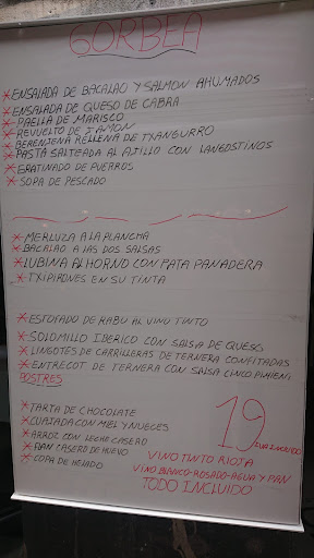 The food was terrible. I was only able to eat the salad and it wasn't that great. I ordered entrecot and and it was rubbery as hell. I took one bite and didn't dare eat anymore. I didn't even ask to exchange it for something else because I didn't feel like dealing with the waiters any more and I didn't trust the cook. The service is about what you can usually expect from the Basque Country and my father is Basque. They usually are very curt and "too busy to be polite". The person I went with said hello to the waitress and the waitress didn't even respond. Etiquette is sadly disappearing all around world but when you are paying for something you expect basic courtesy and this place lacked even that. I didn't return the food to exchange it for something else because I hate doing that and because the service killed any desire to do that. I wouldn't recommend that restaurant to anyone. As you can see from the reviews it isn't held in high regard very often. Avoid this place...