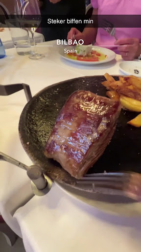 Read moreBest restaurant in Bilbao! On holiday in Bilbao and was looking for pretty restaurants, but could not find any. Tripped over this one and it looked great from the outside with white table cloths and very delicatly set tables. We were nicely welcomed by a charming Young man. I ordered the beef tenderloin served on stone, with french fries. And it is the greatest beef I have ever tried. I am a picky eater and loved this. Great service and we were here three times in a three day holiday. Greatest Pick. We were recognised by the waiter the times we came back to the restaurant. We were here today at 28/07 and the waiter was the same as the other times and he had great service. Kind and welcoming. This place deserves even more customers and great reviews. The food and everything else was amazing. Chill place. Not expensive for what we get. Helene -...