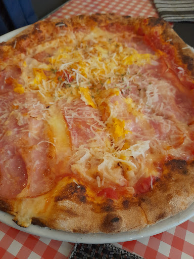 Read moreComo todas mis reseñas seré lo más clara posible, y empezamos por lo correcto: La comida está bien, es decir la pizza al horno de piedra estaba buenísima, no cabe duda que el horno cumple su función. Buenos ingredientes, buena cocción y sabor increíble. De entrante te ponen de cortesía un pan tipo, masa de pizza muy bueno y crujiente, para acompañar con aceite picante, que a mí, que adoro el picante me resultó muy bueno. La ensalada caprese, bueno... El tomate bastante insípido y el pesto le faltaba algo... No tenía tanta intensidad, con lo cual al mezclarlo todo no me sorprendió, poca albahaca una pena porque al ser tan simple, el verdadero top es el pesto que lleva y era poco para la ensalada. El risotto: no lo volvería a pedir! Tenía demasiado tomate?no se sentían otros sabores, Pensé que la suntuosidad vendría por el parmesano o el queso... Pero no! Traía 2 langostinos y algo de setas... Por el precio pienso que la calidad podría mejorar. 🌻Las camareras muy atentas y serviciales, menos una, con lo cual No pedimos postre aunque quería probar el tiramisú, pero no lo pedí porque: Al pedir dos cervecitas más, las trajo del tiempo, con una temperatura adentro terrible porque hace mucho calor,🥵😔 muchooo. Y al decir que estaban del tiempo, nos respondió de manera poco correcta. En fin que así "tuvimos" que beberla. Y entonces.... Se me pasaron las ganas de postre. 🥵Tengo que decir que el local es súper caluroso🥵Y quería salir corriendo. Pues lo de las cervezas te deja chocado para pedir más! Quién quiere cerveza...