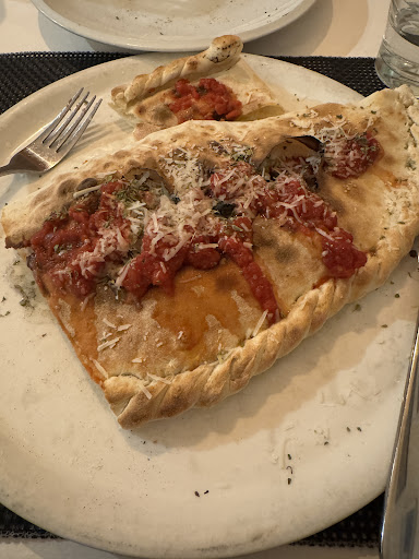 The lows: the tiramisu was on the dry side, and appeared to have been made several days ago. When we arrived, we were placed at a table by the bathrooms, when there were tables upfront and at least one of these tables for two people ended up not being occupied for the next hour and a half. The staff seemed to be overwhelmed, both the two waiters as well as the kitchen staff. From the moment we were seated until the point when we were able to catch someone’s attention, 20 minutes elapsed. 25 minutes later only one of the dishes was served. Apparently the salad had fallen through the cracks, and it took another 20 minutes to make it. By then, I was done with my calzone, so my wife and I got to see the other one eat. In short, from seating at the table until the point my wife got her salad, 65 minutes elapsed. I hope this mismatch of waiting and kitchen staff to the number of customers was an exceptional event.
